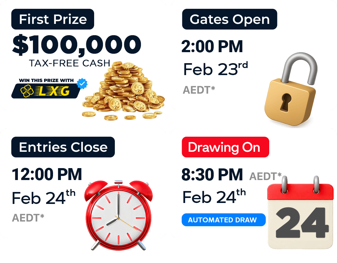 At LXG AU, we’re excited to give you the opportunity to take home a $100,000 in TAX FREE CASH! Every entry not only puts you closer to owning an incredible prize but also helps support charities and meaningful causes across the community.