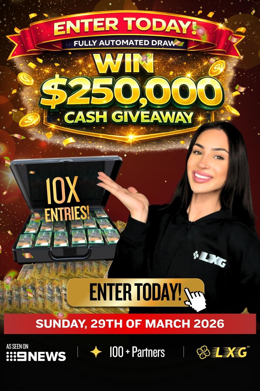 As a LXG AU member, you’ll be automatically entered to win our life-changing giveaways, with cash options up to $250,000!