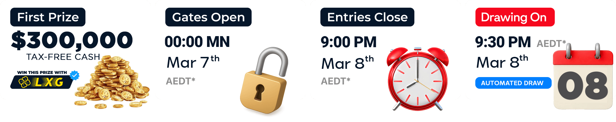 At LXG AU, we’re excited to give you the opportunity to take home a $300,000 in TAX FREE CASH! Every entry not only puts you closer to owning an incredible prize but also helps support charities and meaningful causes across the community.